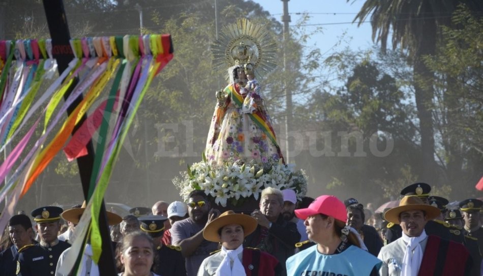 Imágenes de todos los tamaños acompañaron a la fiesta central, con diferentes atuendos, resaltó entre ellas la réplica de una Virgen que llevaba un vestido inspirado en la bandera de Salta.