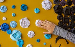 Los origamis, agrupados o dispersos, oficiaron de "pintura" del mural.Javier Corbalán