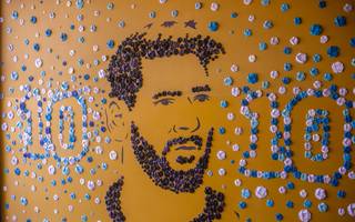 En el Centro Polivalente de Arte los alumnos homenajearon a Lionel Messi. Hicieron un mural efímero con origami con el rostro de su ídolo de la Selección.