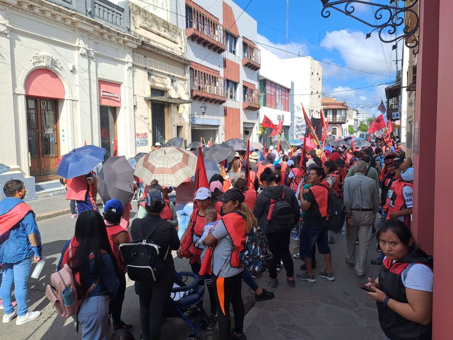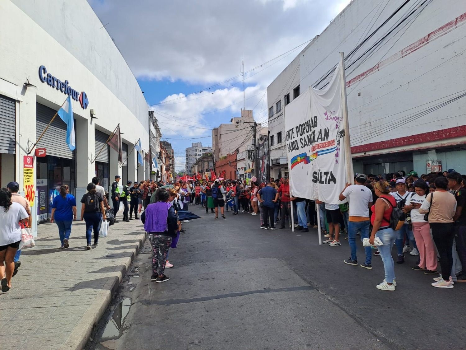 Otro grupo llegó hasta calle España, donde se manifestaron frente a las empresas Edesa, Gasnor y Aguas del Norte.