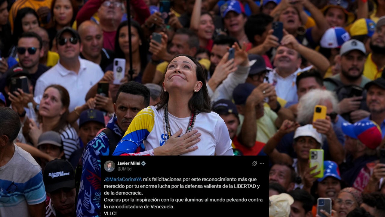 El presidente Javier Milei felicitó este viernes a la líder opositora venezolana María Corina Machado, quien fue galardonada con el Premio Nobel de la Paz 2025.