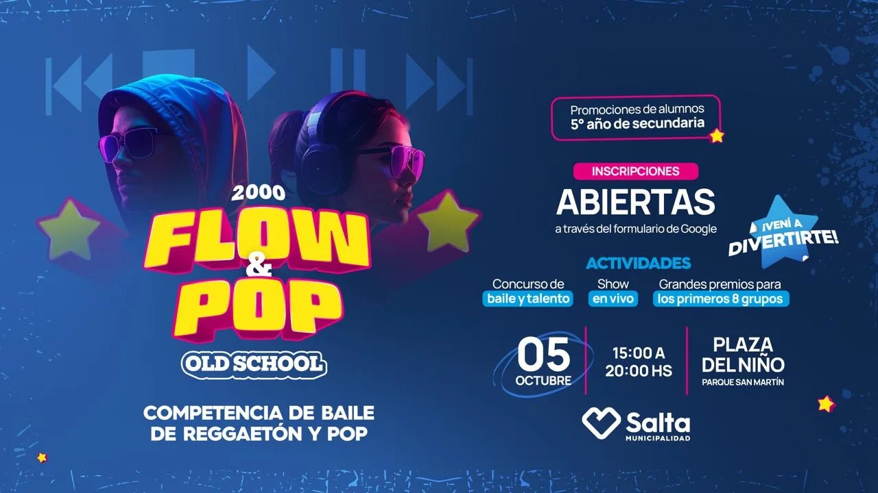 La Municipalidad, a través de la Agencia de Cultura Activa, invita a las promociones de 5° año de las escuelas secundarias de la ciudad a participar de “2000 Flow & Pop: Old School”, la competencia de baile que se realizará este domingo 5 de octubre en la Plaza de los Niños del Parque San Martín.
