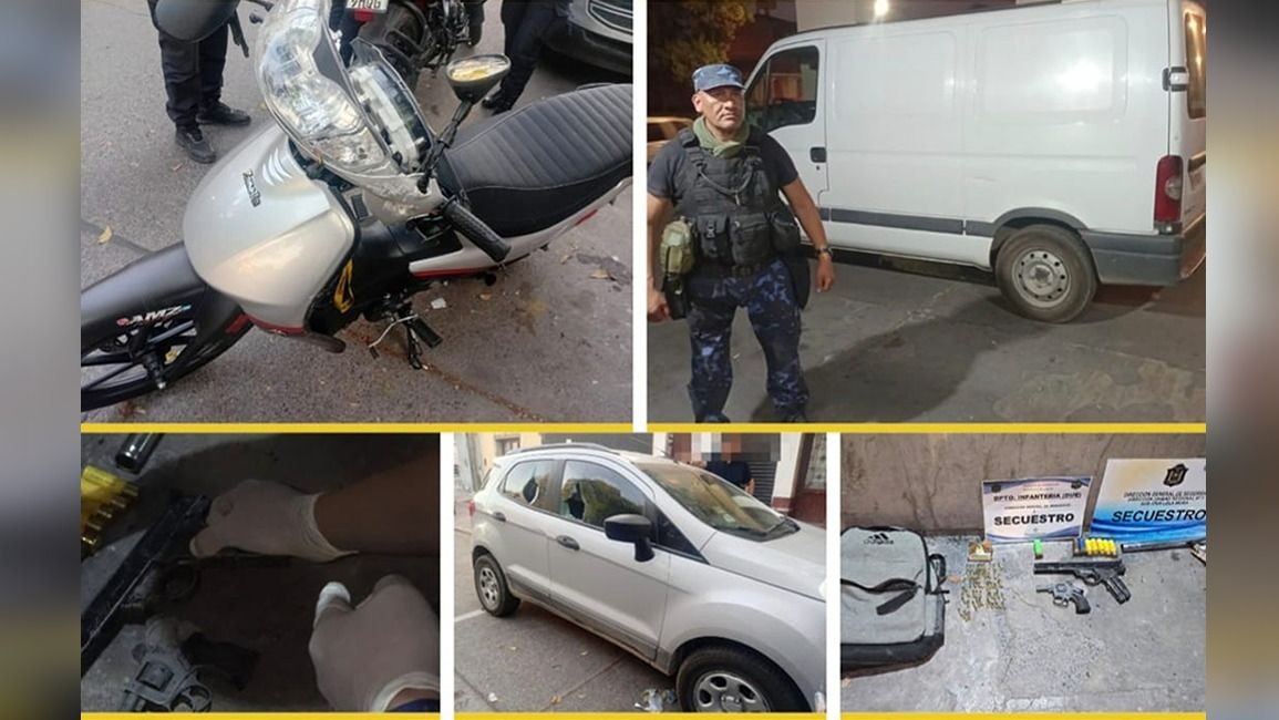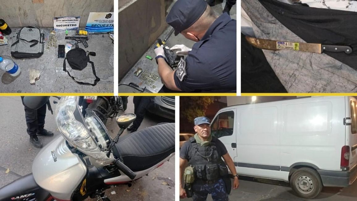En el interior del vehículo la policía secuestró un revólver, dos armas de fuego hechizas, proyectiles de varios calibres, una bandera del club Central Norte y botellas de vino.