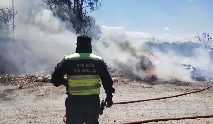 La intervención se realizó esta tarde en calle Suiza en la parte posterior de la feria tras una alerta ciudadana al Sistema de Emergencias 911. Se trabajó de forma articulada con equipos de Bomberos de la Policía y cuarteles de Bomberos Voluntarios. El incendio fue sofocado.