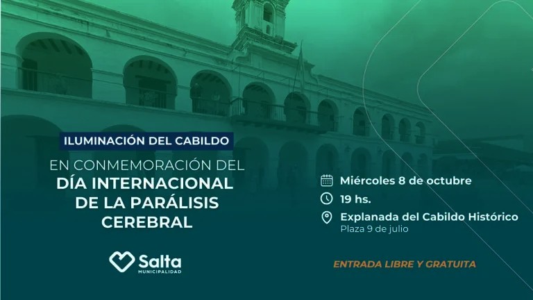 En el marco de la “Semana de Concientización, Capacitación y Sensibilización sobre la Parálisis Cerebral”, la Municipalidad de Salta iluminará, esta tarde, a partir de las 19 horas, la fachada del Cabildo Histórico con el color verde.