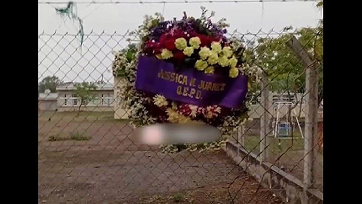La tenebrosa amenaza apareció la semana pasada en el alambrado perimetral del jardín donde concurre la pequeña hija de la damnificada. En el centro de la corona de flores estaba impreso el nombre de la mujer.
