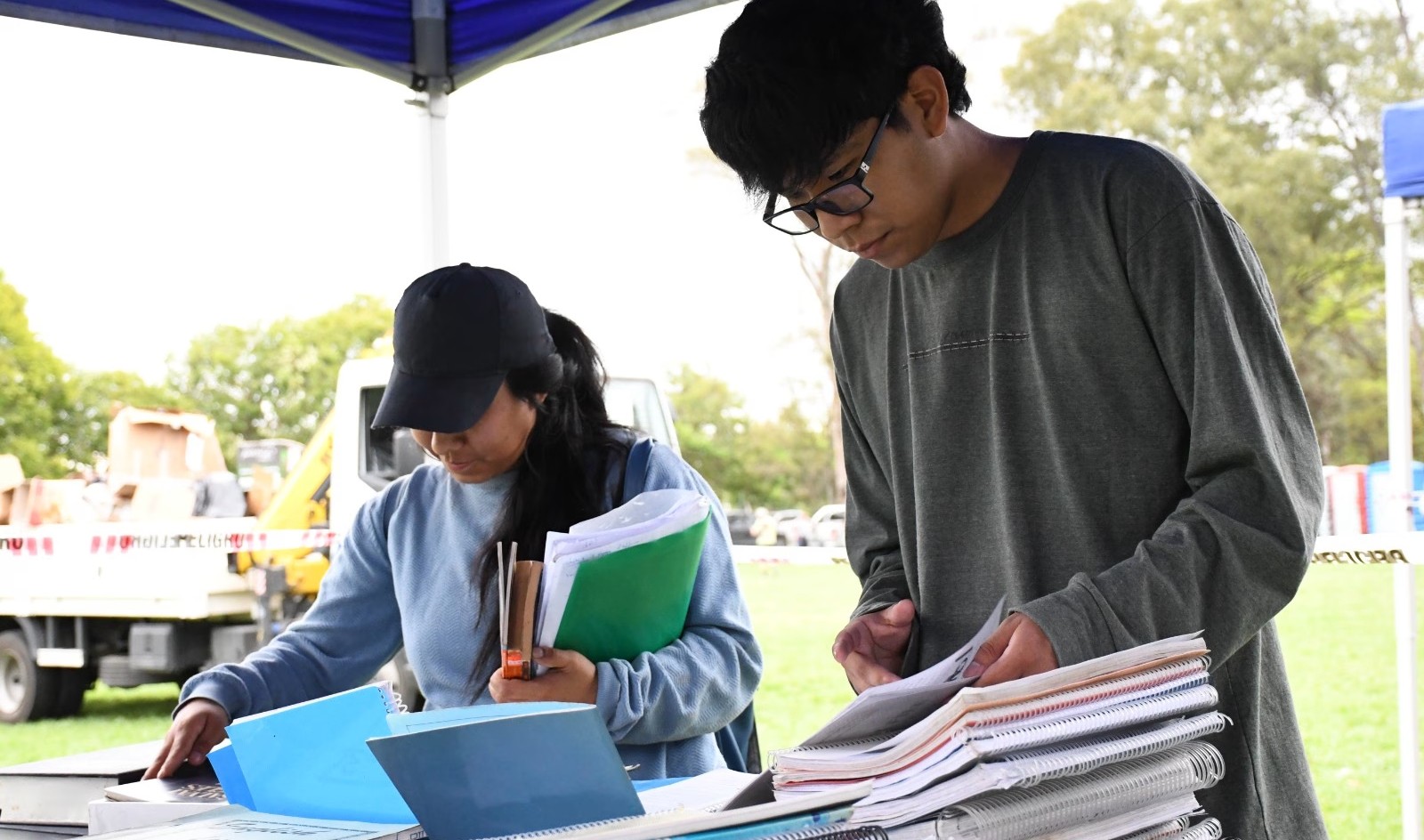 Hay libros nuevos y usados: literatura clásica, moderna, libros de manualidades y oficios, apuntes universitarios de las carreras de comunicación, antropología, historia, psicopedagogía, medicina, enfermería, abogacía, agronomía, entre otras. Textos de primaria, secundaria, libros infantiles, literatura en japonés, alemán, inglés, hebreo, y más.