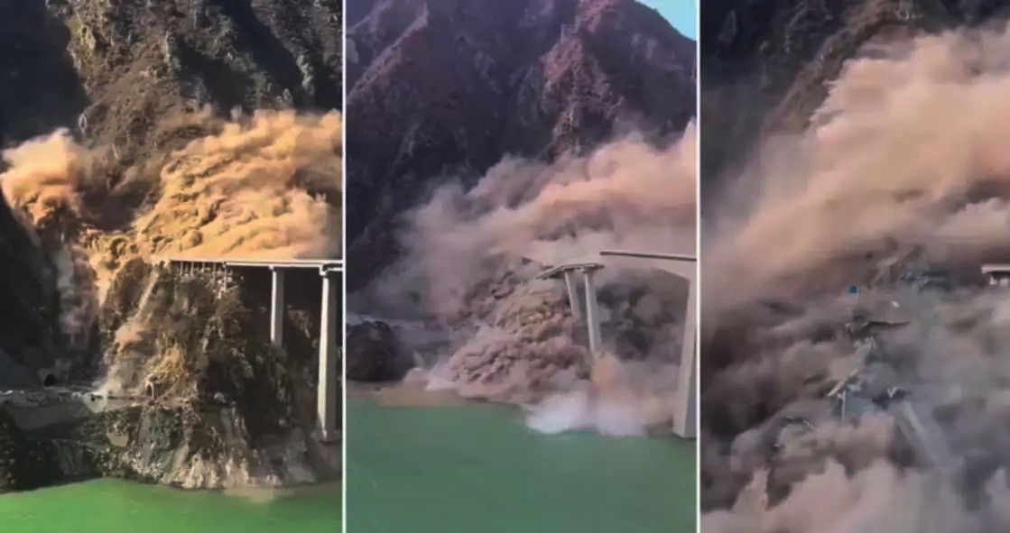 La situación empeoró el martes. Videos publicados en línea muestran cómo, a medida que se intensificaba la deformación de la pendiente, se desencadenó un deslizamiento de tierra que provocó el colapso del lecho de la carretera subyacente y el puente de acceso. El derrumbe de pilares y cubiertas del puente produjo una gran cantidad de humo y polvo, imágenes que se volvieron virales en redes sociales.