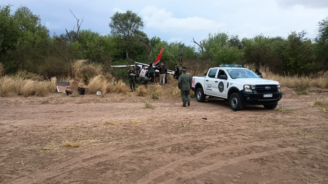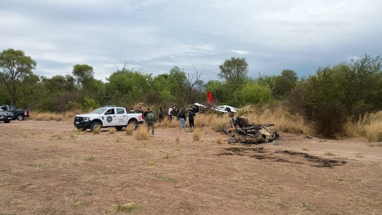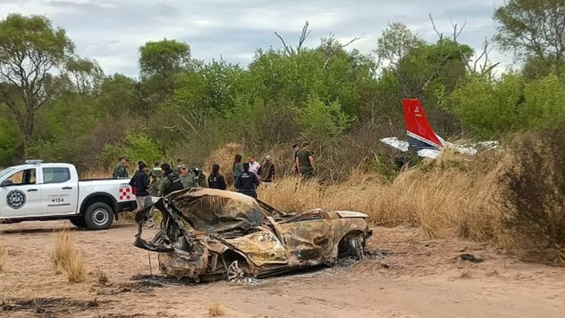 Al llegar, la policía encontró la avioneta siniestrada contra un árbol y un vehículo en llamas.