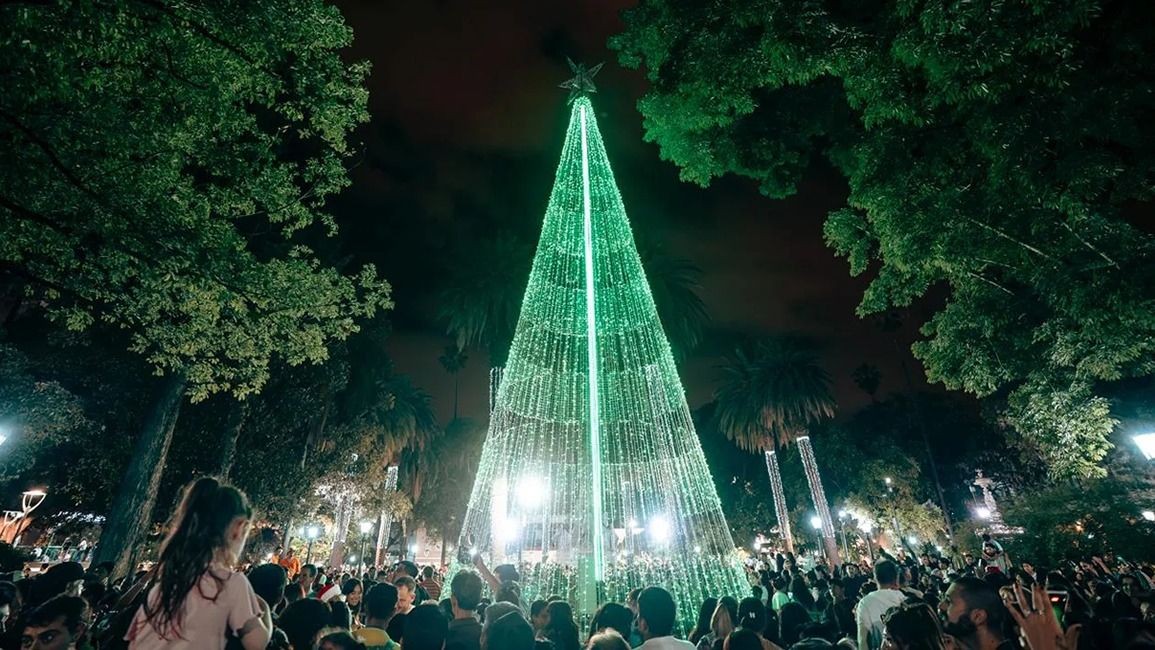 Anoche se realizó el encendido del Árbol y las luces navideñas en la Plaza 9 de Julio.