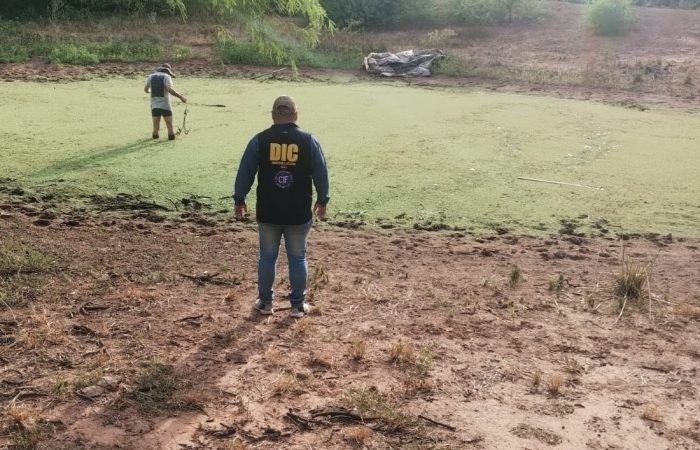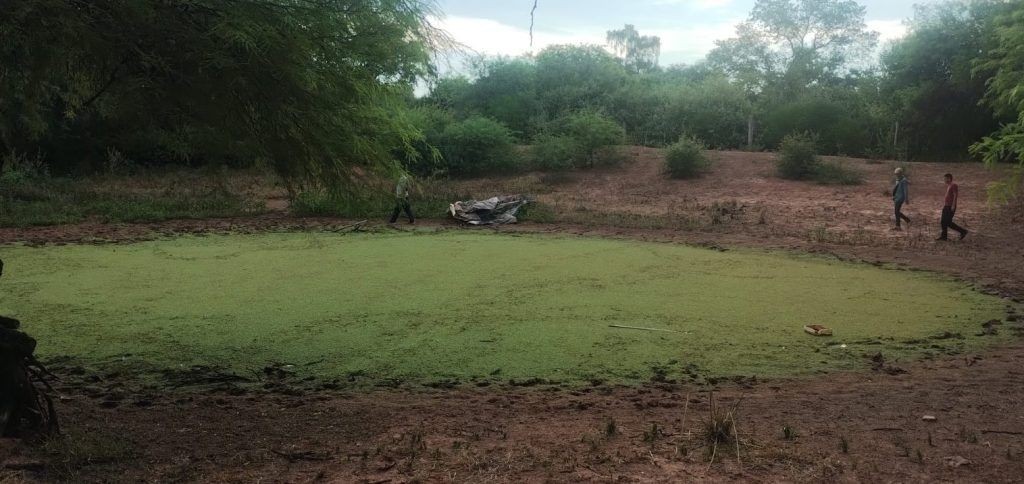 El fin de semana se trabajó en una laguna ubicada en el puesto El Chivil, camino a Rancho El Ñato, con la colaboración de personal de Bomberos.