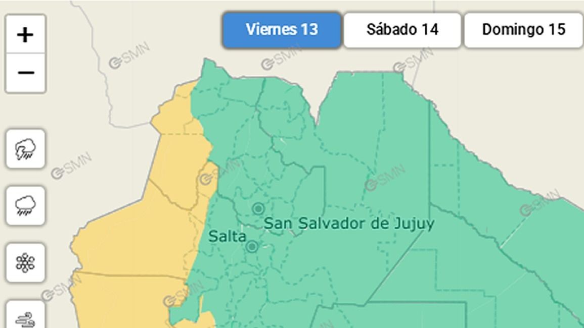 Según el Servicio Meteorológico Nacional la vigencia rige desde las 12 hs hasta 18 hs para la zona de la puna de: Cachi, La Poma, Los Andes, Molinos, Cafayate y San Carlos.
