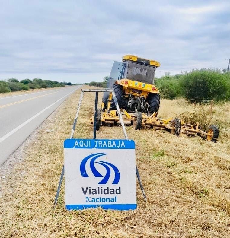 La Dirección Nacional de Vialidad realiza desmalezados manuales y mecánicos en la Ruta Nacional N° 16, cerca de Macapillo.