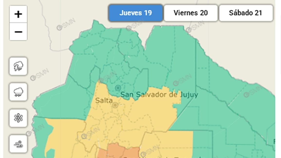 En la zona de la Puna y en los sectores más elevados de la cordillera, las precipitaciones podrían presentarse en forma de nieve y/o granizo.