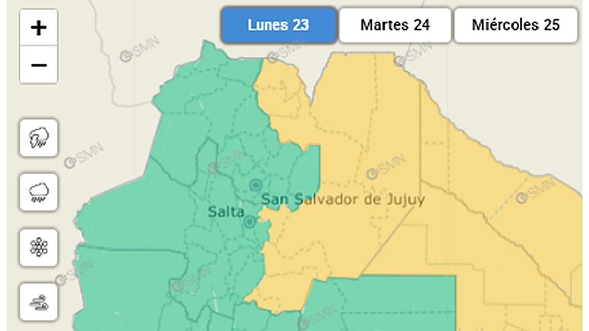 La zona de cobertura comprende para esta tarde los departamentos Rivadavia, Anta, General Güemes, La Candelaria, Metán y Rosario de la Frontera.