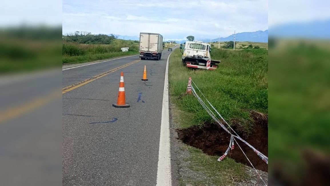 Corte de media calzada en la Ruta Nacional 9 por rotura de alcantarilla