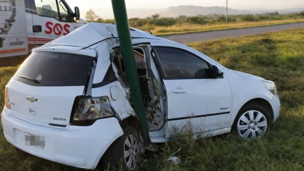 El vehículo se dirigía hacia el norte y por las marcas que dejó sobre el suelo, circulaba a alta velocidad, quedando prácticamente “abrazado al poste” por el impacto en la puerta trasera del lado derecho.