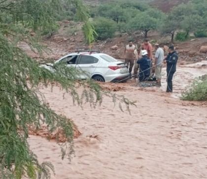 Ocurrió ayer en horas de la mañana. El conductor fue rescatado por los efectivos y bomberos voluntarios junto al vehículo, mientras que los otros dos hombres, de 26 y 34 años, que habían sido arrastrados aproximadamente 500 metros por la corriente, fueron localizados, asistidos y trasladados en ambulancia al hospital local con politraumatismo.