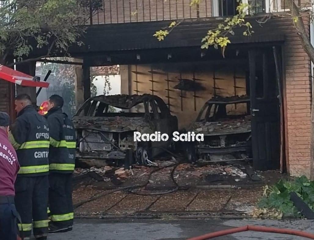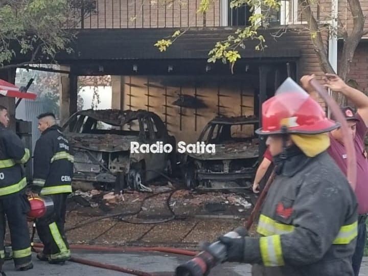 El fuego afectó a dos vehículos estacionados en el garage.