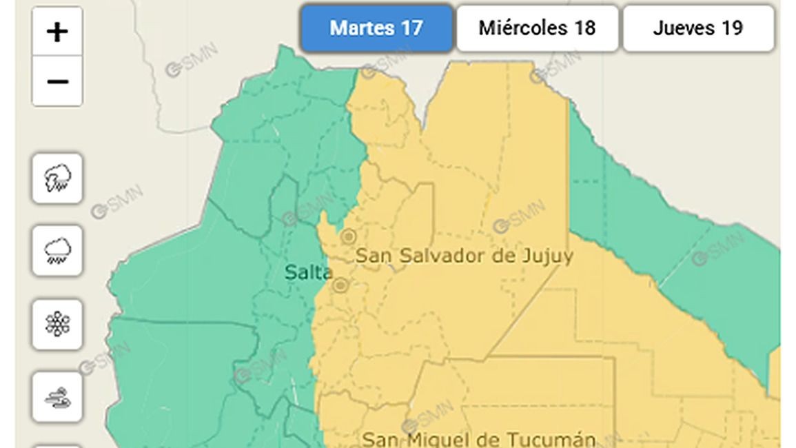 La zona de cobertura comprende para esta noche y madrugada del miércoles los departamentos Rivadavia, General San Martín, zona de Yunga de Iruya, Orán, y Santa Victoria.