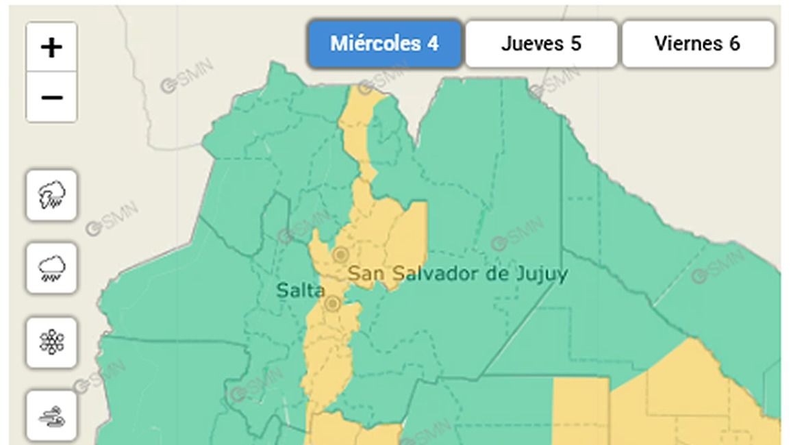 El organismo nacional detalló que la región será afectada por tormentas aisladas, algunas fuertes o puntualmente severas.