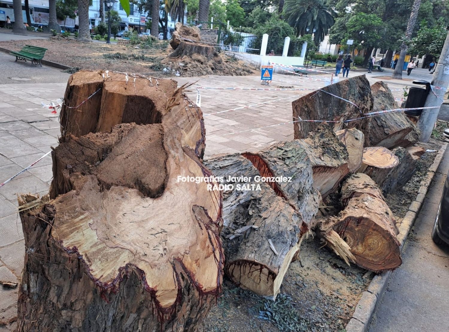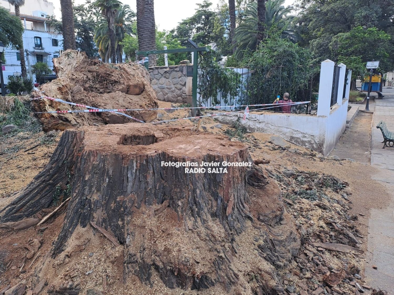 Plaza Belgrano: Cortaron el árbol que perdió una gran rama el viernes