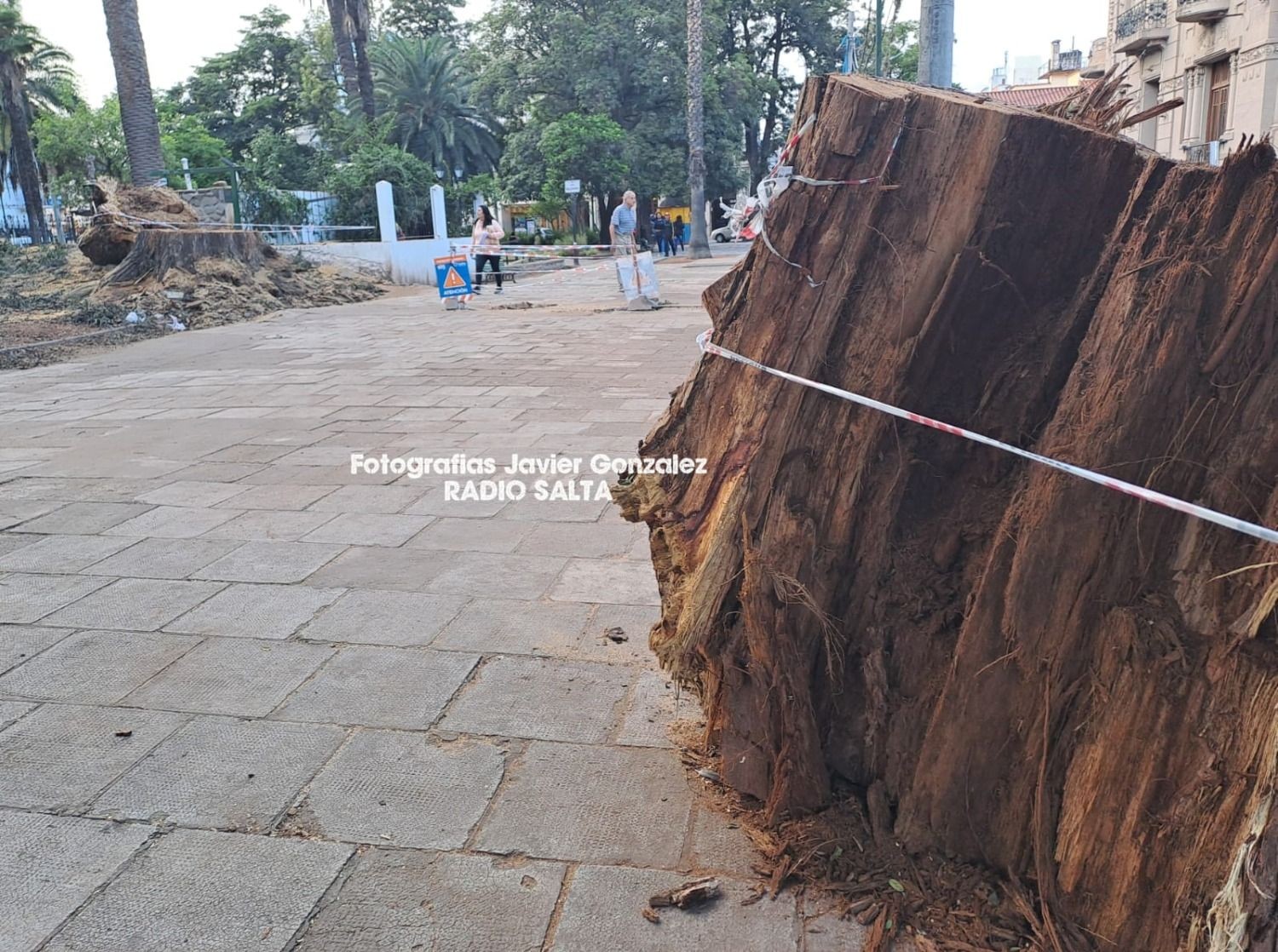 La caída del gran tronco de la centenaria tipa sorprendió a numerosos transeúntes casuales y no causó heridos ni destrozos de casualidad.