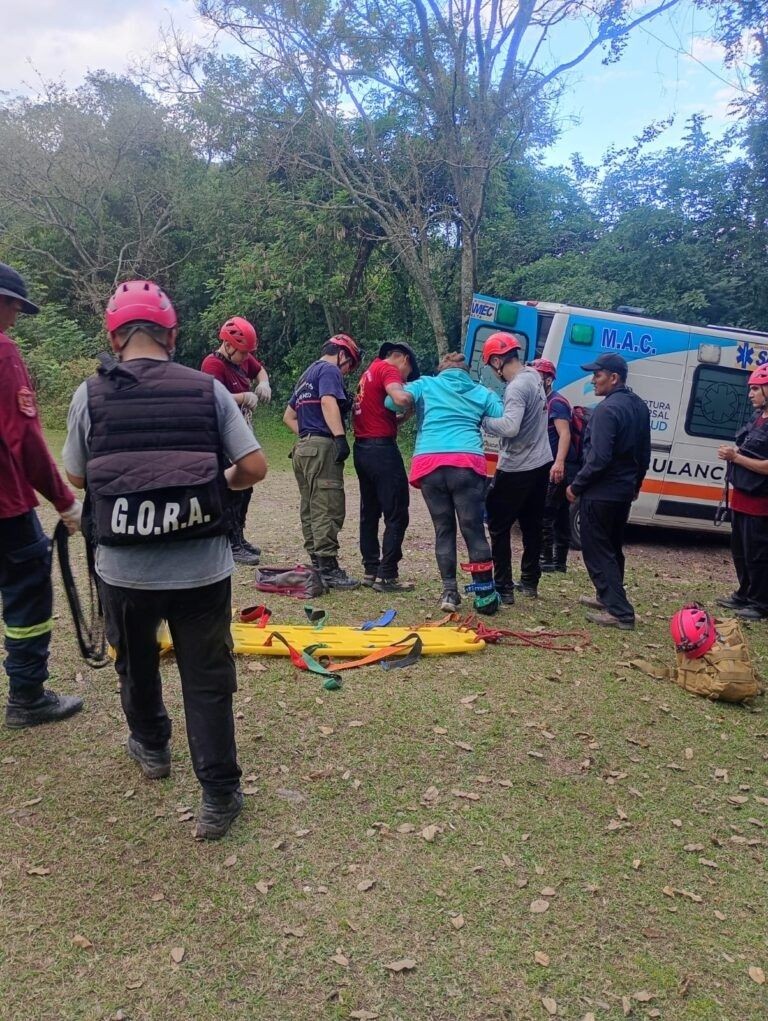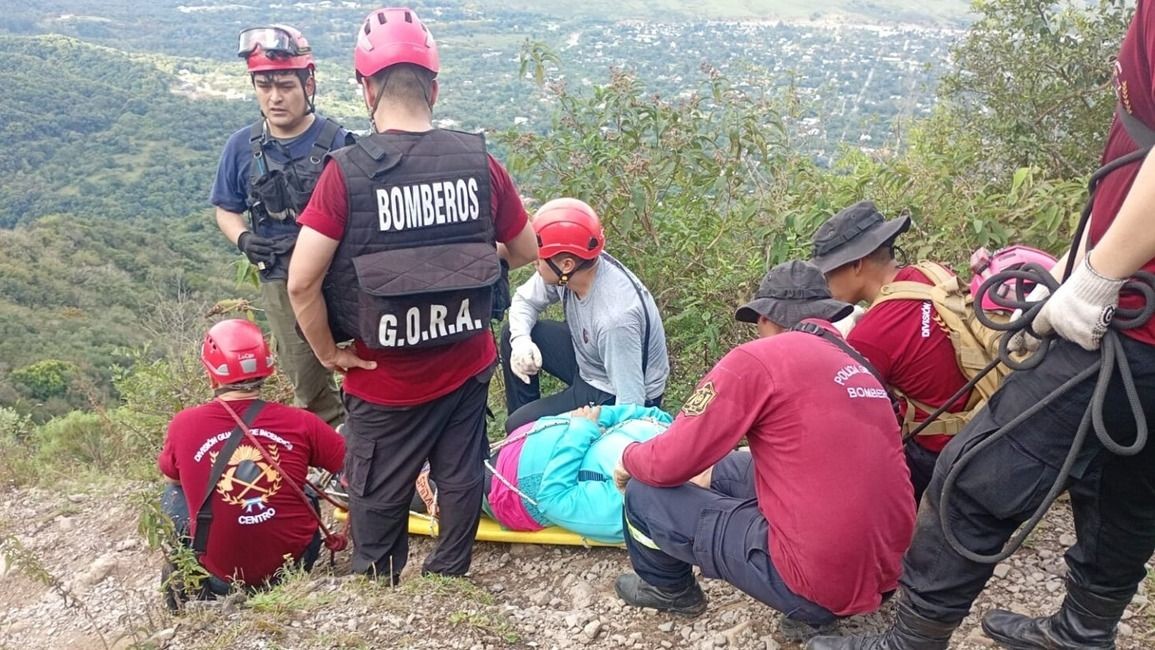 El grupo de rescate de altura GORA, y bomberos de la policía y voluntarios lograron rescatarla y una ambulancia del Samec la trasladó a un centro asistencial.