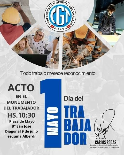 Este viernes 1 de mayo en Salta capital se llevará a cabo un acto desde las 10:30 en la plaza del Barrio San José.