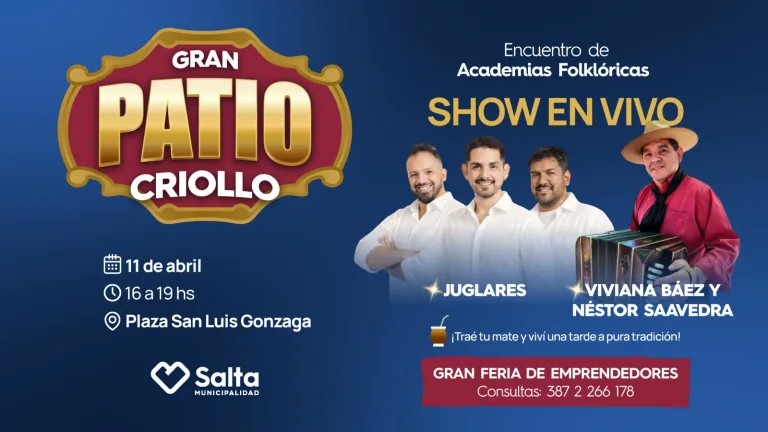 La Municipalidad realizará este sábado 11 de abril la propuesta del “Gran Patio Criollo”, será en la plaza San Luis Gonzaga de Valle Hermoso.